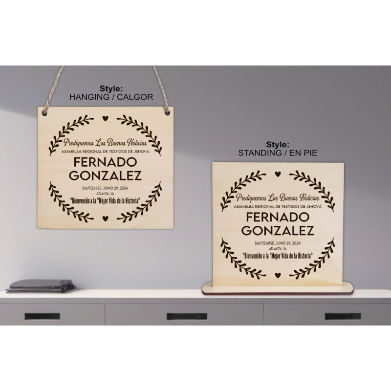 Description: Our laser engraved plaque made of high-quality 100% light wood species (basswood, birch, or maple) is the perfect gift to commemorate the occasion of getting baptized and dedicating one's life to Jehovah. It is the most important day of our life. The design features the person's name, location, date of baptism, and a beautiful leaves motif.