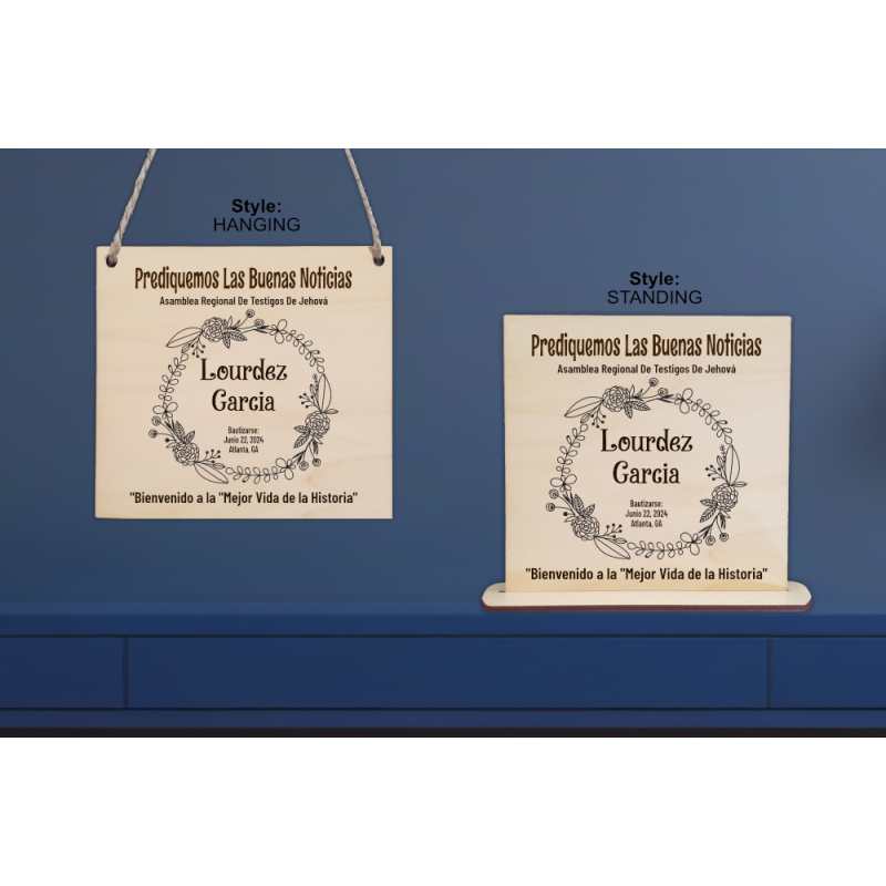This engraved plaque made of high quality 100% light wood species (basswood, birch, or maple) is the perfect gift to help commemorate the occasion of getting baptized and dedicating one's life to Jehovah.  It is the most important day of our life.    The design features the person's name, location and date of the baptism and a bouquet design.